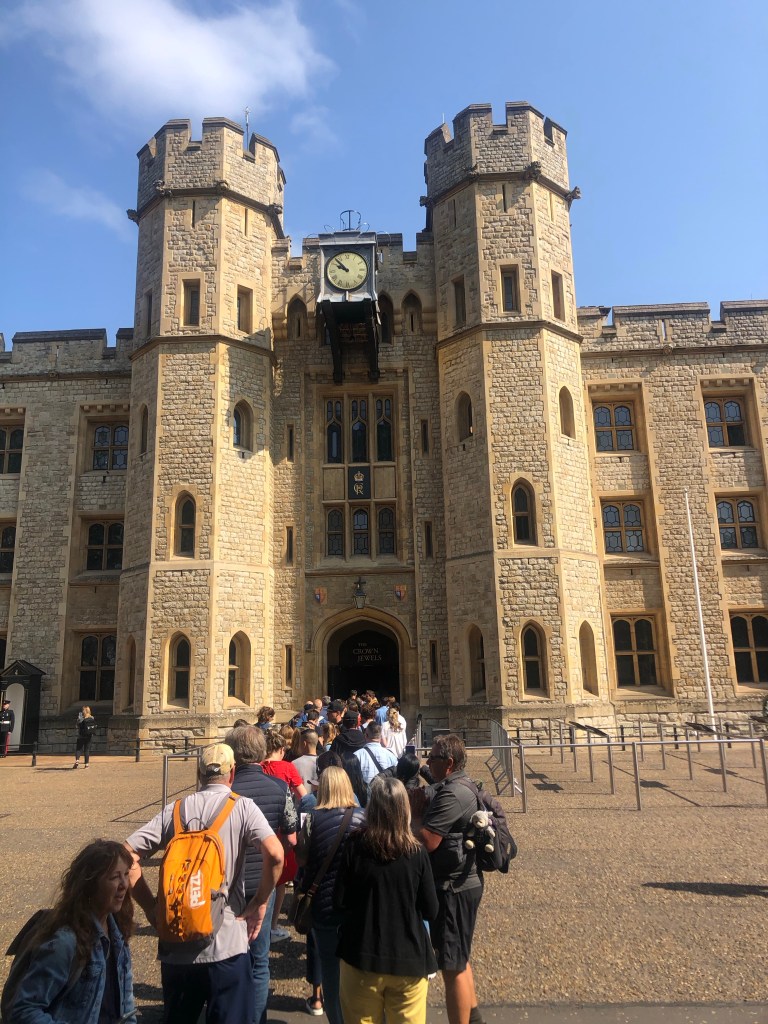 Once inside (and going through the usual security checks etc) we headed straight to view the Crown Jewels (knowing from research that this can get very busy). We were amazed at the number of different crowns. Each crown is made individually for each monarch, and then the jewels and trimmings are added (something we had not realised). The monarch’s don’t actually own the crowns, they are just custodians.